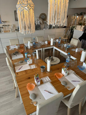 11 Frauen, darunter auch Landfrauen aus Nachbargemeinden, trafen sich in Schöfflisdorf in den Räumen der artep.world, bei Petra Küttel, die uns die Kunst des «Dottens» beibrachte.