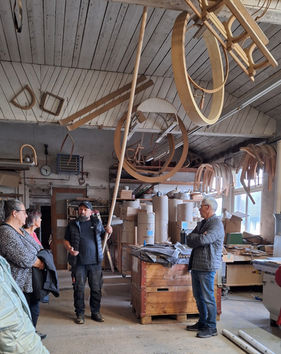 Der Werkmeister Fredi Unterweger führte die Gruppe durch die Werkhallen, in denen der charakteristische Duft von Holz und Wärme den besonderen Charme des Handwerks widerspiegelt. Mit großer Begeisterung erzählte er von der langen Geschichte des Unternehmens, das im unteren Aaretal einst vor allem für die Möbelindustrie produzierte. Seit den Anfängen hat sich viel verändert – geblieben ist jedoch die Leidenschaft für Qualität und handwerkliche Perfektion.